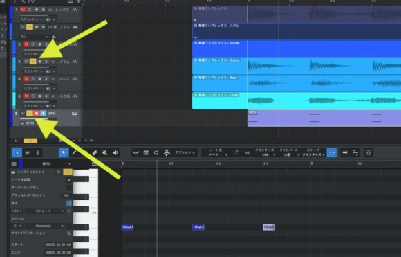 分離されたものと自分の打ち込みをDAW上で聴き比べながら作っていくというのが一番作り易いんじゃないかと思います。