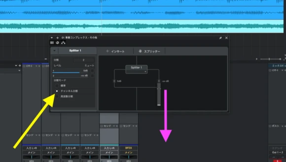 操作したいトラックのインサートに「Presonus」→「スプリッター」をインサートします。
